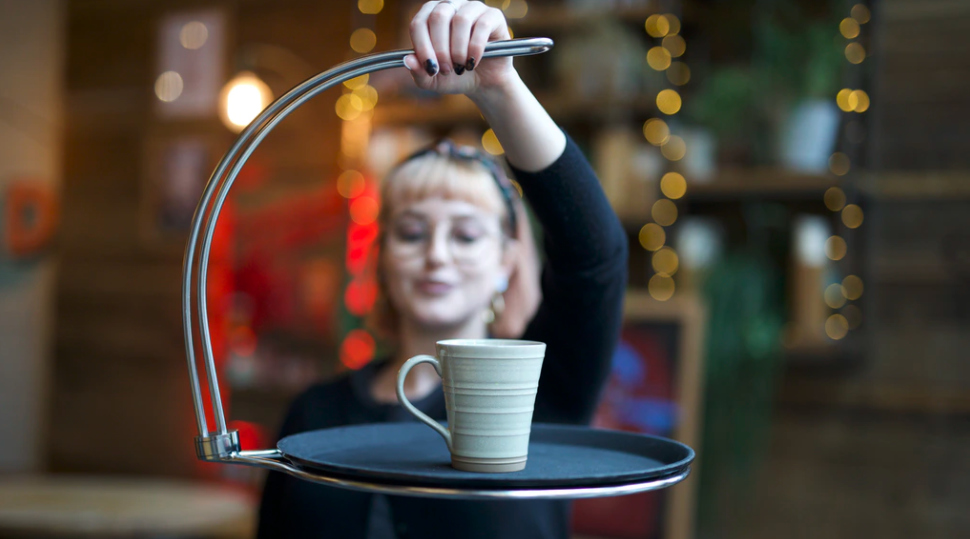 揺らしても中身がこぼれないドリンクに最適な片手トレイ「Tipsi Tray(ティプシートレイ)」のご紹介です。