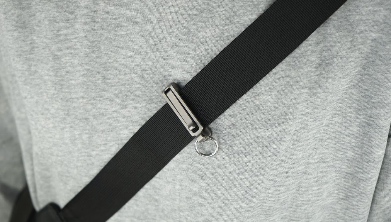 キーチェーンの基本は、鍵を安全に保つこと。Omniclipは厚さ2.5mmのチタン製スプリングプレートを使用し、ラッチに常に圧力を加えています。わざと開けようとしても、機構は一定範囲で元に戻り、鍵をしっかり固定します。