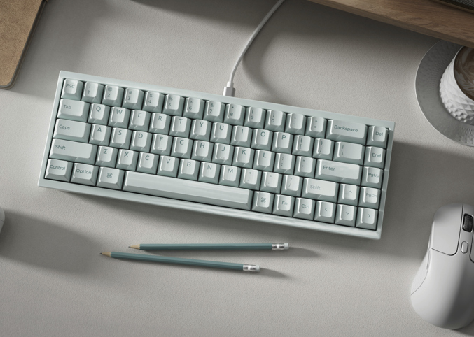 大きすぎず、小さすぎず。65%レイアウトにより、作業やゲームに必要なキーをすべて備えつつ、コンパクトでデスクを広く使え、マウスの操作も妨げません。