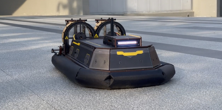 実際に浮上して走行する(本当に浮きます!)、高速・プログラム可能なホバークラフトです。レーザーカットされたMDFとアクリルで構成され、ESP32-S3、ブラシレスモーター、サーボ、各種センサー、そして詰め込めるだけのクールなガジェットや仕掛けを搭載しています。