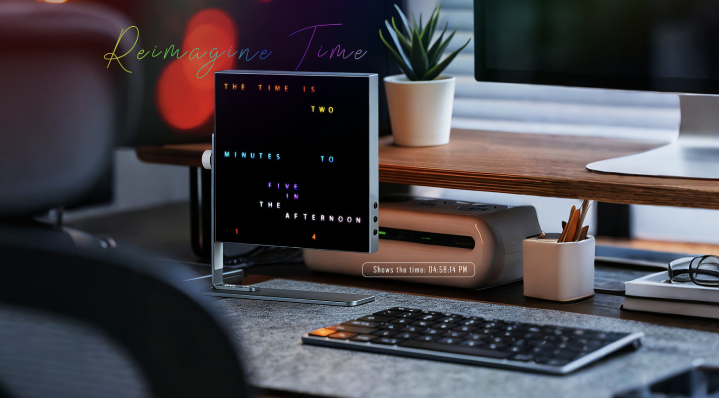 時間や文字を、遊び心たっぷりにカラフル表示できるデジタルキャンバス「Word Clock - TX1」(ワードクロック TX1)のご紹介です。