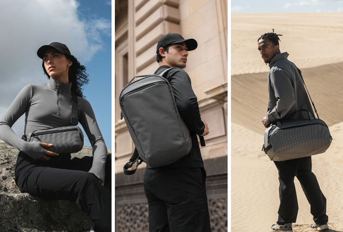 3つのバッグは、それぞれ異なる「動き」に最適化されています。35L ダッフル、22L バックパック、2L スリング。