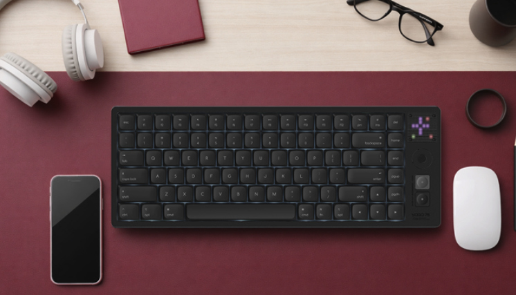 75%レイアウトに 84 キーを凝縮し、デスクスペースを最大限に活用しながら、集中作業に必要な機能をすべて備えています。