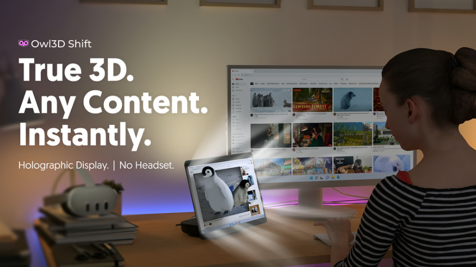 メガネもヘッドセットも不要、PC画面をそのまま立体空間に変える次世代3Dディスプレイ「Owl3D Shift」のご紹介です。