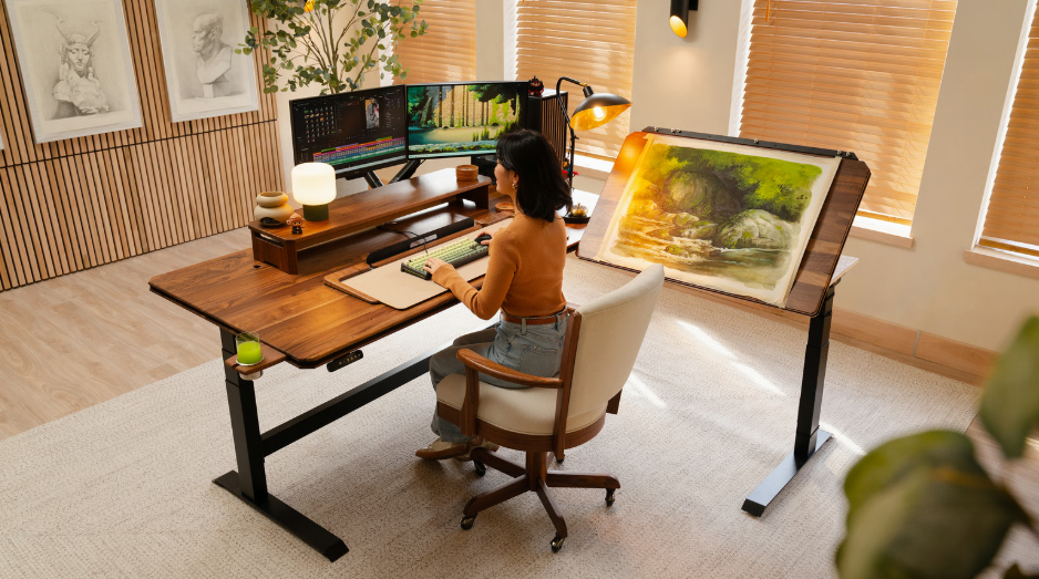 WyrmwoodのModular Sit-Stand Deskは、作業・ゲーム・創作・日常すべてに対応する多機能デスクです。無垢材によるクラフトマンシップと、柔軟なモジュール設計を融合し、あらゆる使い方に適応します。